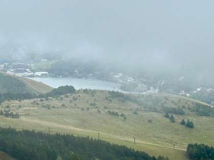 引き続き、車山を下山中です。一瞬、霧の晴れ間に白樺湖が見えました。