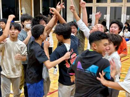 楽しい時間は、あっという間に過ぎてしまいます。昨日の綱引きとの合計点で、総合優勝は1組でした。ただ、順位に関係なくクラス・学年の交流を通して団結力を強めたひと時となりましたね。最後は学年全員で集合写真を撮りました。