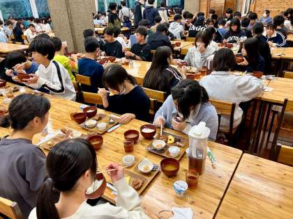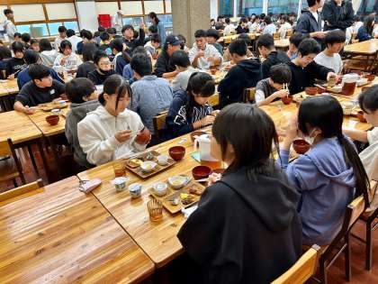 初日の配膳に手間のかかっていた食事係の皆さんも、すっかり手際よく配膳してくれるようになりました。おかげで、学年全員が余裕をもって食事ができています。どうも有り難う。