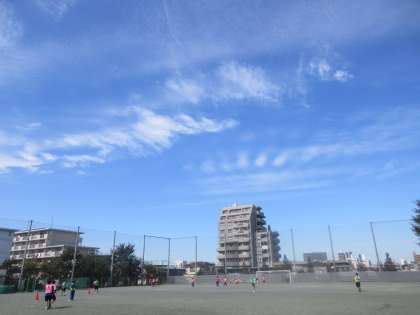 この2週間ほど、東京はすっきりしない天気が続きましたが、今日は秋らしい澄んだ青空が広がっていました。久しぶりに校庭で気持ちよく実技ができるのでは?と思っていたところ、授業冒頭はメディアホールに集まっていました。『アルティメット』のチーム編成を変えるためです。