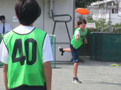 『アルティメット』は、ディスク(円盤)を投げてパスをつなぎ、得点ゾーンを目指す競技です。したがって、言語・非言語にかかわらず、常に仲間とコミュニケーションをとる必要があります。