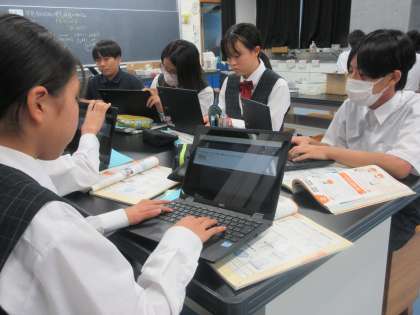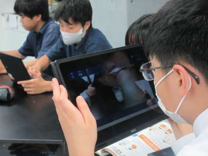 固体のロウはビーカーに入れて加熱しますが、熱せられて液体になったロウが体に付着すると危険です。そのため加熱作業は、先生がまとめて行われていました。生徒の皆さんは、ロウの様子や体積・質量をはかったところを写真に収め、その後の考察につなげていました。