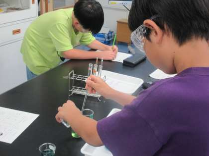 授業のめあては「身近な材料(お茶)を使って酸性、中性、アルカリ性を見分けることができる」とありました。6年生の理科でも水溶液の性質を学習しますが、発展的で興味のわく実験でしたね。他校の児童と協力して取り組んだ実験は、過程も結果も記憶に残ったことでしょう。