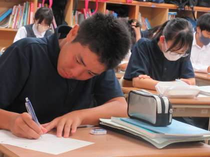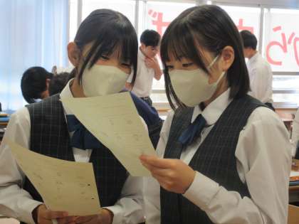 英語の授業なのに、教室に入ったとたん〇〇さんから「校長先生、レモンを漢字で書けますか?」との質問。実は、Do you know how to write “lemon”in kanji ?という質問に○×で答える活動をしていたのでした。