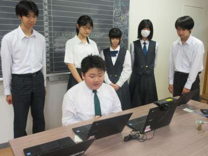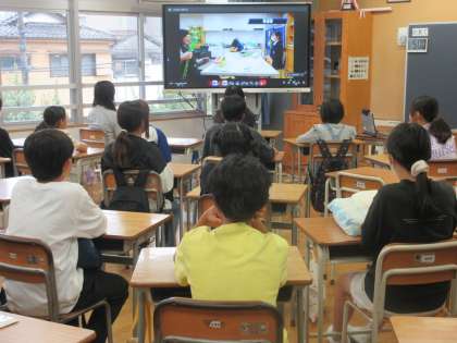 生徒会役員による学校説明会も、授業後にそのまま教室でリモート配信する方法で行いました。体育館への移動・整列時間短縮や集団にいづらい生徒への配慮を兼ねたこの方法は、板三中で日常的に取り入れています。