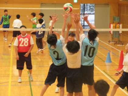 7年生も随分慣れてきて、ラリーが続くようになっていることはもちろん、さまざまな戦術も取り入れています。例えば相手ブロックをかわすために、バックトスやクイック攻撃でアタックしたりしていました。