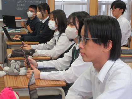 道徳で取り扱う内容項目に【我が国の伝統と文化の尊重】というものがあります。それと関連させた授業で、修学旅行(班行動)についてまとめたスライドの発表会を行っていました。