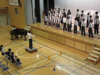 明日はすべてのクラスが「今できる最高の合唱」を披露し、それをお互いに称えあえる発表会にしてください。また、合唱だけでなく吹奏楽部やダンス部、海外派遣や平和の旅の発表も楽しみにしています。