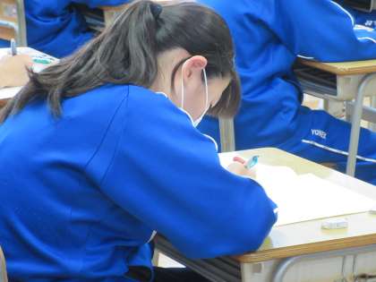 本日9年生は1〜5時間目に「まとめテスト」を行いました。国語・数学・英語・社会・理科の5教科について、現時点での学習到達度を測るテストです。いよいよ迫ってきた進路選択を前に、真剣に取り組んでいました。