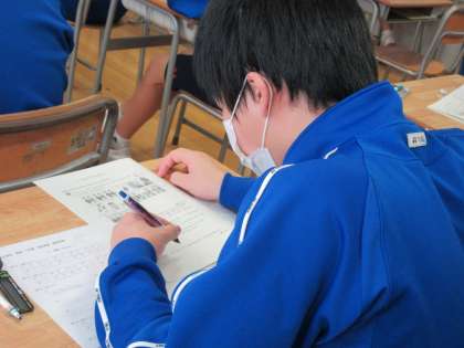 英語であれば、例えば9年生は【全ての問題に答えられる】8年生は【時間配分に気をつけて問題を解く】7年生は【問題をよく読み丁寧に答えを書く】といっためあてでした。しっかり達成できましたか?
