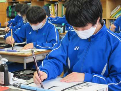 国語の授業では、7・8年生で年間20時間程度、9年生で10時間程度を書写にあてることになっています。ただし、今年度は臨時休業期間があったので、例年より配当時間はすくなるなると思われます。