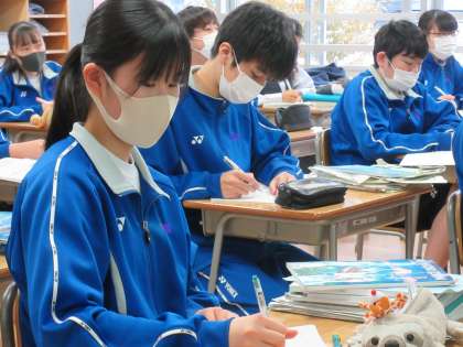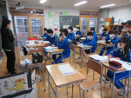 Unit-6の学習です。教科書には、マザー・テレサ、オバマ元米大統領など歴代のノーベル平和賞受賞者の写真が載っています。その中に、ミャンマーの民主主義と人権を求めたアウンサンスーチー氏の写真もありました。