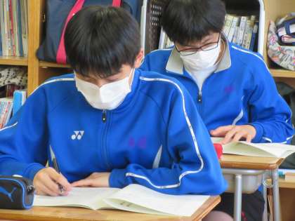 コロナ前から学校で行っていた【黙○】といえば、声を出さずに教科書などを読む際の【黙読】があります。また、武道の授業の始めと終わりに正座して、精神を統一するために【黙想】をすることもあります。