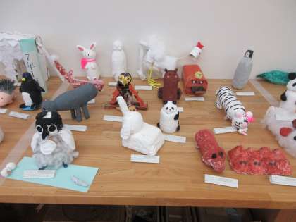 引き続き、7年生・美術科『素材を生かした動物』の展示風景です。