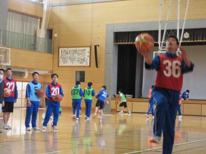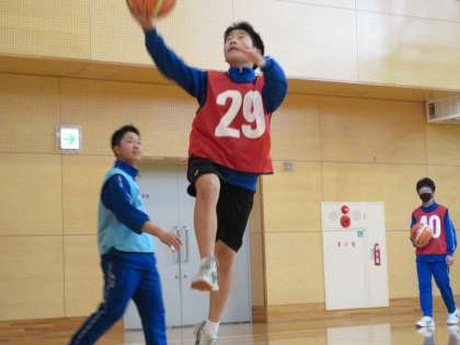 『バスケットボール』に取り組んでいます。感染症対策として身体接触を避けるため、個別に行えるシュート練習に特化しています。本日は、主にレイアップシュートを練習していました。