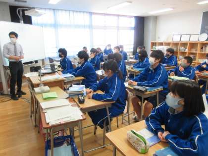 7年1・2組 英語(少人数)の授業の様子です。