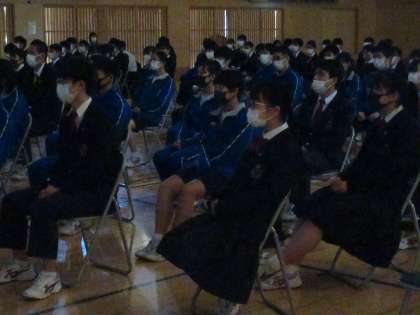 【生命の尊さ】をテーマに、4クラス合同で映画鑑賞会を開いていました。鑑賞していたのは『風のかたち〜小児がんと仲間たちの10年』というドキュメンタリー映画です(版元から許可をいただいて上映しています)。