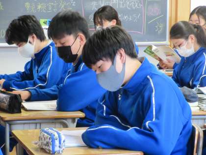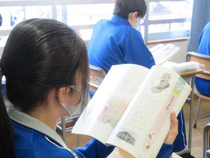 7年生と同様8年生のこのクラスでも、本日は副担任の先生が授業を担当されていました。テーマも7年生と同じで【よりよく生きる喜び】です。教科書より『足袋の季節』という読み物を使用していました。