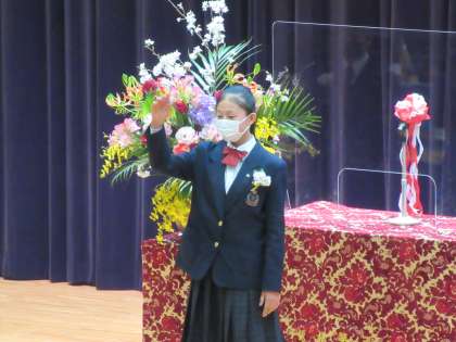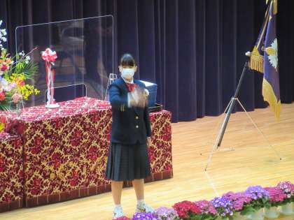 校歌は、佐野さん(指揮)中村さん(伴奏)、式歌は、齋藤さん(指揮)江川さん(伴奏)が担当してくれました。いずれも流れるような指揮と美しい伴奏で、マスク越しに歌う仲間の声を引き出してくれました。