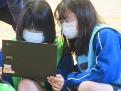 そうした有事に備え、本日9年生全員に貸与してあるChromebook(クロームブック)を持参させ、Google Classroom(クラスルーム)というアプリに参加できる態勢を整えました。クラスルームに登録することで、クラス単位で学習課題の配付や進捗状況のチェック、採点等が可能になります。