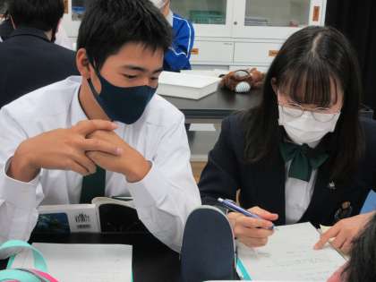【図書室で行っているつもりで『黙』を徹底する】【指示があったとき以外は実験器具を触らない】等々、厳しい条件です。それらを守るために生まれた緊張感は、感染症対策だけでなく円滑で安全な実験の実施にも役立っているようでした。