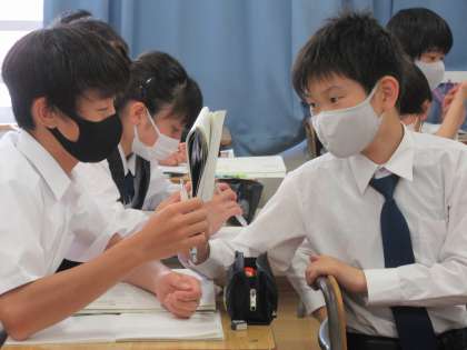 「この歌は、どんな場面を詠み、何を伝えようとしているのか」について自分の考えをノートにまとめ、それを見せ合う形で友達と意見交換しました。その後、身振り手振りも交えながら様々な見解が発表されました。