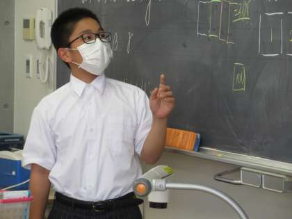 さすがに100個となると、見た瞬間に数えるというわけにはいきません。そこで、いろいろな考え方で答えを出し、その考え方を自分の言葉で説明してくれました。数学的思考力と表現力を養う学習活動です。