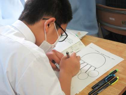 頭の部分には「自分の主張・意見」を書き入れ、足の先端部には「根拠となる事実等」を書き込みます。その図をもとに、自分の主張を説明するのです。これまでに考えた移民のメリット・デメリット両方を参考にするので、○か×かの2択ではなく△的な主張も許されるハイレベルな取り組みです。