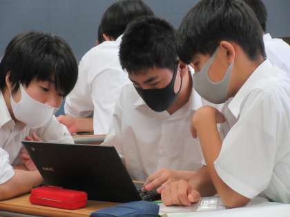 この時間、9年生は教室を分散して、修学旅行の班行動コース決めに取り組んでいました。実施の可能性を高めるため2学期に実施時期を変更した修学旅行ですが、コロナの感染状況によっては予断を許しません。