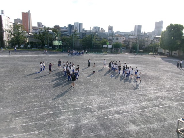 7年生は「ローハイドー」、8年生は「大縄跳び」、9年生は「ムカデ競争」の練習をしていました。