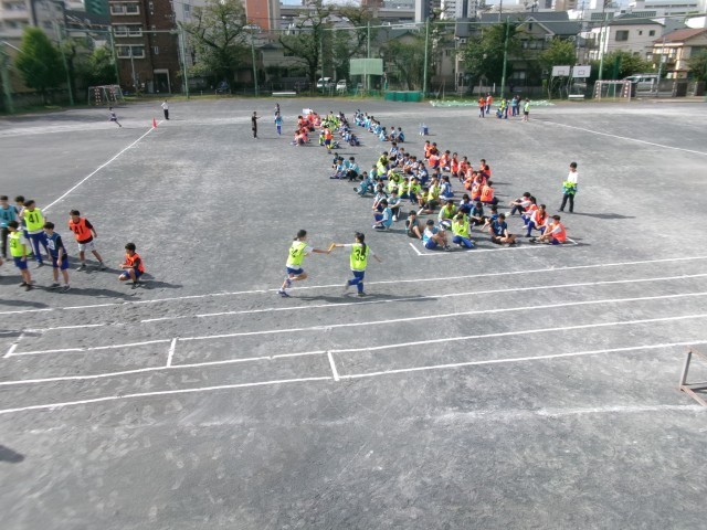 7年から9年まで全員でバトンをつなぎ、順位を競います。