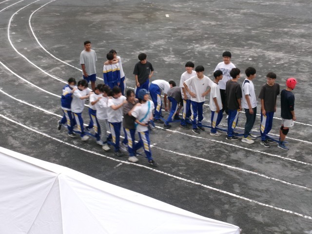 9年運動会練習 公開日 2025/10/09 更新日 2025/10/09 9年生 10月9日、9年生運動会練習の様子です。9年生がムカデ競争の練習をしていました。なぜか毎年9年生はムカデ競争を選んでいますが、生徒たちはこの競技がとても好きです。