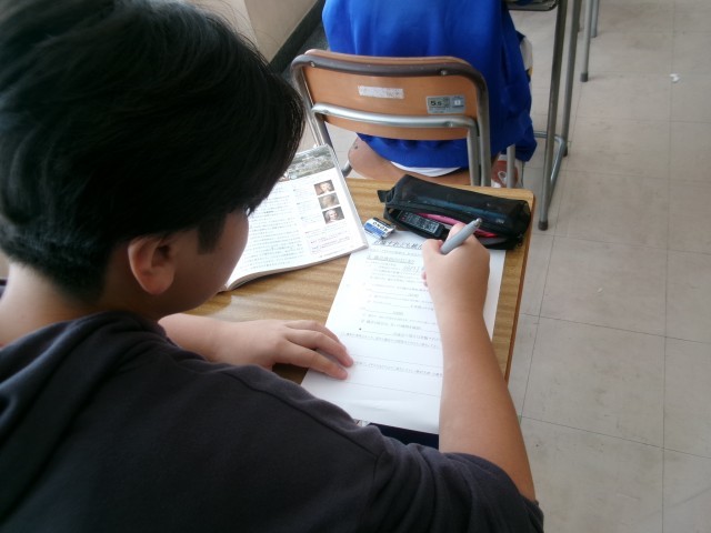 先生の話を聞きながら、ワークシートにメモをしていました。