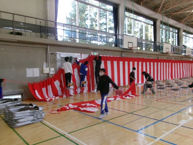 式典会場・学芸発表会(展示)準備中 公開日 2025/11/14 更新日 2025/11/14 今日の様子 11月14日、式典会場と学芸発表会展示の準備の様子です。明日の記念式典、そして並行して行われる学芸発表会展示の部の準備が進んでいます。期末考査が終わって、ゆっくりしたい気分かもしれませんが、生徒たちは頑張っています。