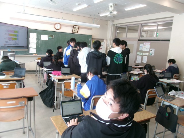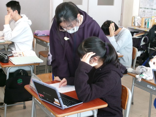 9年生社会の授業 公開日 2025/11/26 更新日 2025/11/26 9年生 11月25日、9年生社会の授業の様子です。今日は経済に関する学習で、ものの流れと情報の流れについて学習していました。一人一人先生の説明を受けたり、友達と相談するなどしながら学習を進めていました。