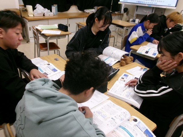 8年生理科の授業 公開日 2025/12/02 更新日 2025/12/02 8年生 12月2日、8年生理科の授業の様子です。今日は、静電気と電気の性質について学習していました。グループで話し合いながら、ワークシートを進めていました。