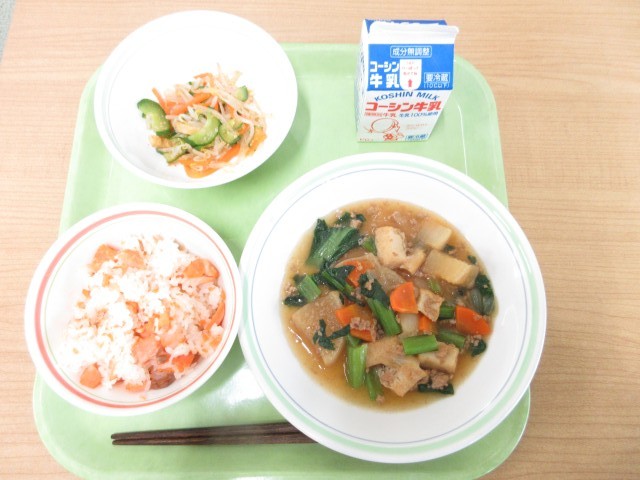 大根の旬は11月~2月で、最も多く出回っている品種は「青首大根」と呼ばれる品種です。大根は、消化を助けるアミラーゼ、リパーゼなどの酵素が多く含まれているため、薬味としてもよく使われます。また、部位によって味の特徴があり、葉の近くは甘みがあり水分が多く、下の方は辛みが強いのが特徴です。今日は大根を一度揚げてから煮た、大根のそぼろ煮です。味わって食べて下さい!