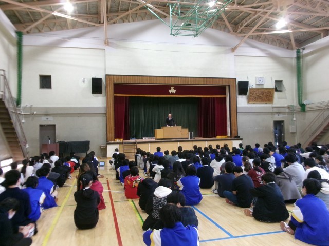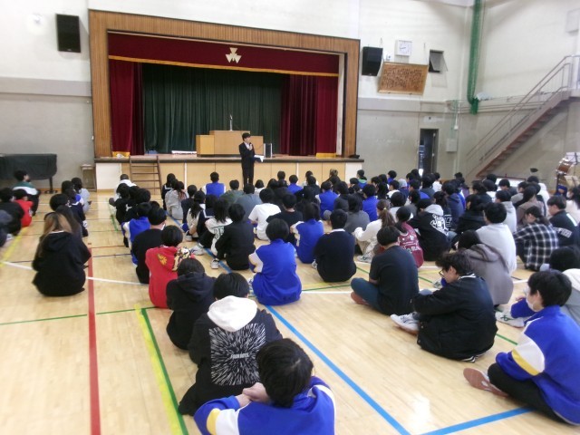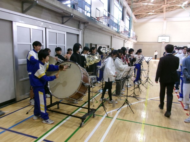 終業式 公開日 2025/12/25 更新日 2025/12/25 学校行事 12月25日、終業式の様子です。終業式は、校長の話、校歌斉唱で終わり、引き続き生活指導主任のはなしがありました。校歌の伴奏を務めた吹奏楽部の演奏は、どんどん上達してきていると感じます。