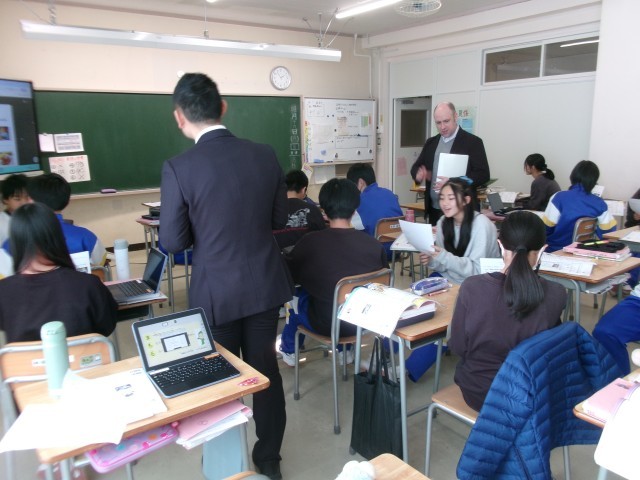 7年生英語の授業 公開日 2026/01/19 更新日 2026/01/19 7年生 1月19日、7年生英語の授業の様子です。今日はALTと一緒の授業でした。授業の中で、2人1組になって英会話の練習を行っていましたが、随分上手になってきました。中学校入学以来、10カ月の成果といった感じがします。授業では友達を相手にしていましたが、2月からは自分の端末で生成AIを使えるようになります。生成AIを相手に、英語の練習もできますね。
