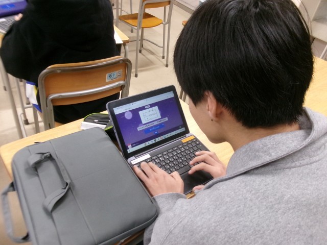 タブレットパソコンを使用して、問題に答えていましたが、ゲーム的な要素もあり楽しそうに学習を進めていました。