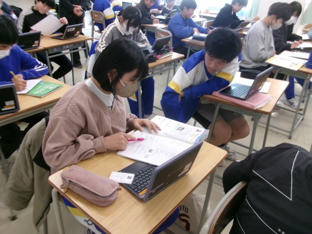 7年生英語の授業 公開日 2026/01/22 更新日 2026/01/22 7年生 1月22日、7年生英語の授業の様子です。今日はALTと一緒の授業でした。今日はレストランの店員と、お客に分かれてレストランでの会話の練習をしていました。生成AIが作ったメニューを使って、会話をしていました。生成AIが作ったメニューは、ちょっと写真がマッチしないものもありました。