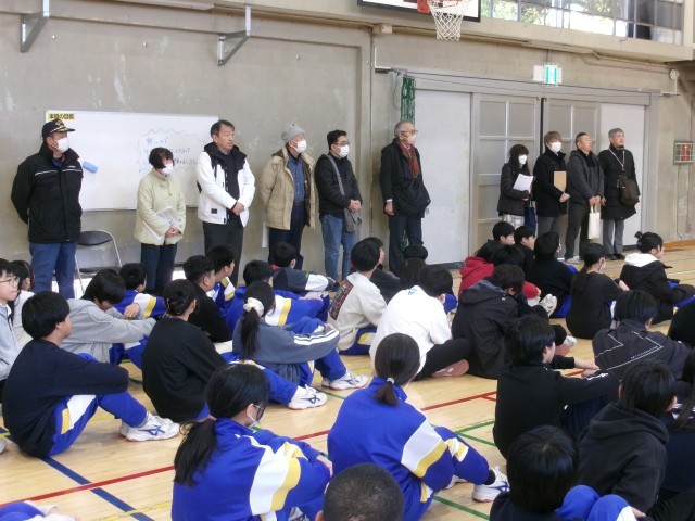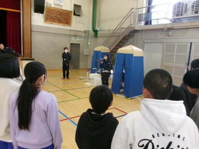 避難所開設訓練 公開日 2026/01/23 更新日 2026/01/23 学校行事 1月23日、避難所開設訓練の様子です。地域の防災担当の皆さんと一緒に、避難所開設訓練をおこないました。今日は、起震車体験・煙体験や、マンホールトイレとパーテーションの説明を受けました。大規模災害が発生したら、中学生も地域の担い手として活躍してくれると思います。 +3