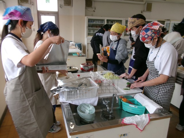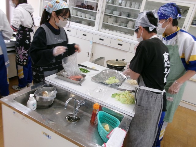 8年生家庭科の授業 公開日 2026/01/28 更新日 2026/01/28 8年生 1月28日、8年生家庭科の授業の様子です。今日は、調理実習です。調理したのは、サーモンの包み焼きでした。とてもおいしく出来上がりました。