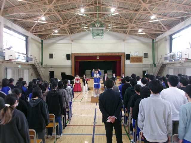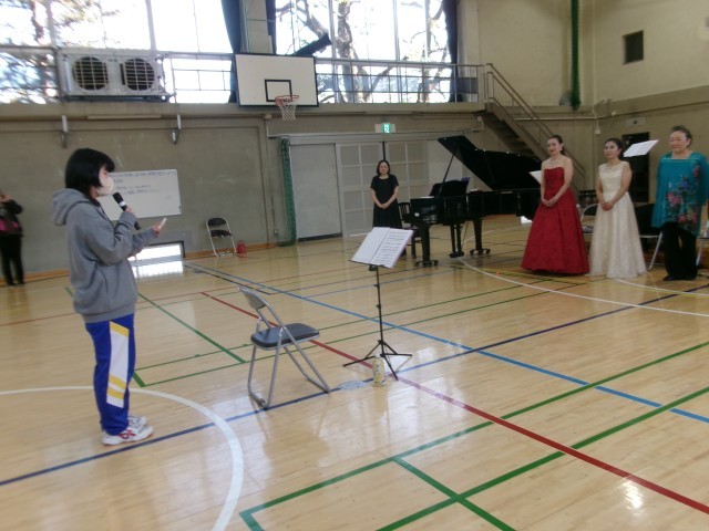 オペラ鑑賞会 公開日 2026/02/06 更新日 2026/02/06 学校行事 2月6日、オペラ鑑賞会の様子です。今年も、武蔵野音楽大学の加茂下先生とお弟子さんをお迎えして、オペラ鑑賞会を実施しました。前半は生徒たちの合唱の指導をしていただき、声を出すための姿勢から響かせ方などを教えていただきました。本校の生徒たちは至って真面目ですので、言われた通り声を出したところ、ぐんと響きが違って聞こえました。後半は、素敵な歌声を聞かせていただき、生徒たちはとても満足そうな顔をしていました。