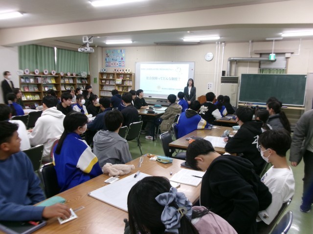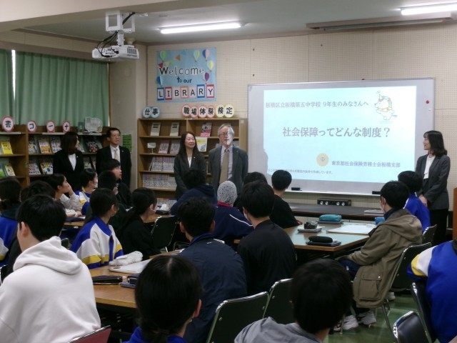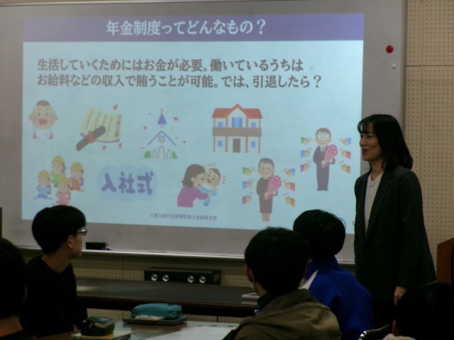 社会保険労務士による職業教育講演会 公開日 2026/03/13 更新日 2026/03/13 9年生 3月13日、社会保険労務士による職業教育講演会の様子です。今日は、4名の社会保険労務士の皆さんに来ていただいて、社会保険労務士による職業教育講演会を実施しました。将来社会人として仕事をもって、自立していくときに必要となるいろいろな話をしていただきました。