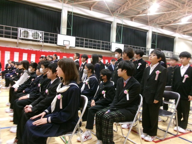 入学式 公開日 2026/04/09 更新日 2026/04/09 学校行事 4月9日、入学式の様子です。本日入学式が挙行され、102名の新入生が本校に入学しました。式の中では新入生誓いの言葉や在校生の歓迎の言葉など、これからの3年間に対する期待やエールを感じました。明日から本格的に中学校生活が始まります。素晴らしい3年間にしてほしいです。