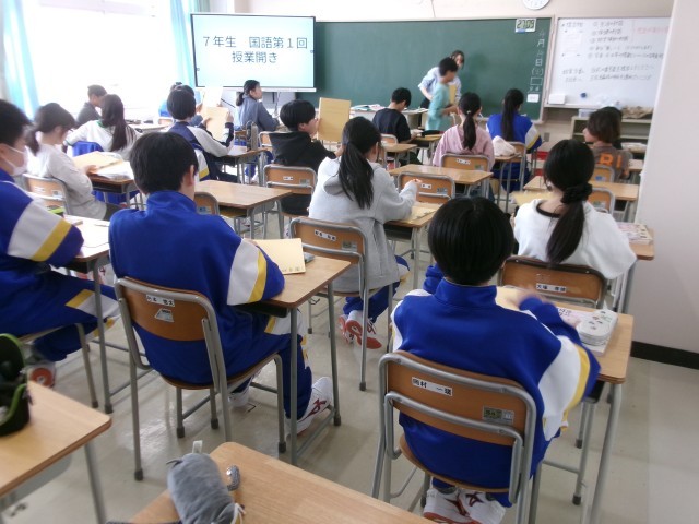 4月14日、7年生の授業の様子です。