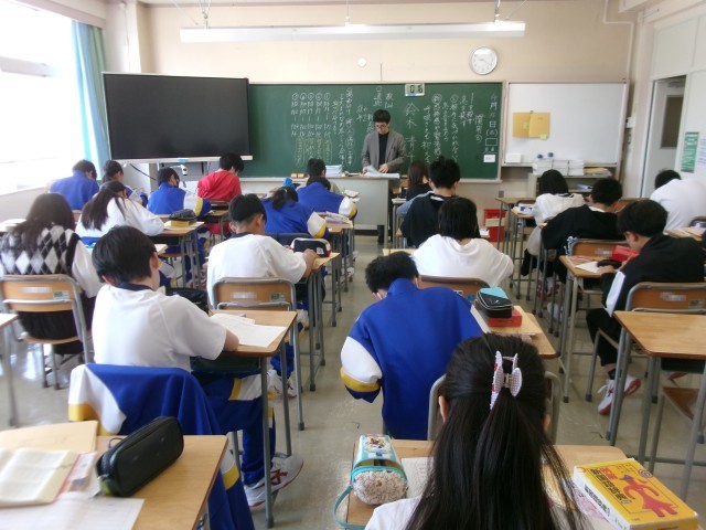 7年生国語の授業 公開日 2026/04/16 更新日 2026/04/16 7年生 4月16日、7年生国語の授業の様子です。ちょうど、辞書をひいて言葉の意味を調べているところでした。最近は、スマホやパソコンで簡単に調べることができるようになりましたが、授業では結構紙の辞書を使っています。