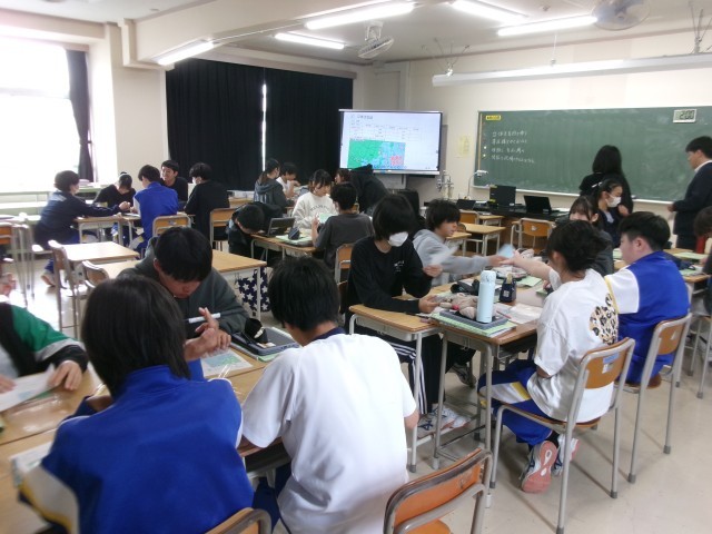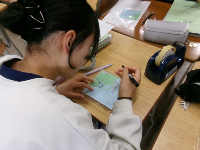 今日は、グループの友達と手分けをして、立体天気図を作成していました。