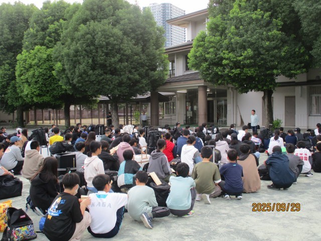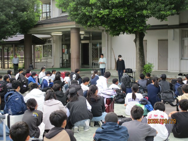 本日、9月29日から10月1日までの3日間で富士見高原移動教室が、始まりました。7時学校集合といつもよりもかなり早い集合時間でしたが、時間通りに集合することができました。子供たちは、出発式で校長先生の話や実行委員の話を真剣に聞きながらも楽しそうにしている姿が見られました。どのクラスも笑顔でバスに乗車し、7時30分、予定通りの時間に出発しました。本日は、鷹山ファミリー牧場で様々な体験をして過ごします。